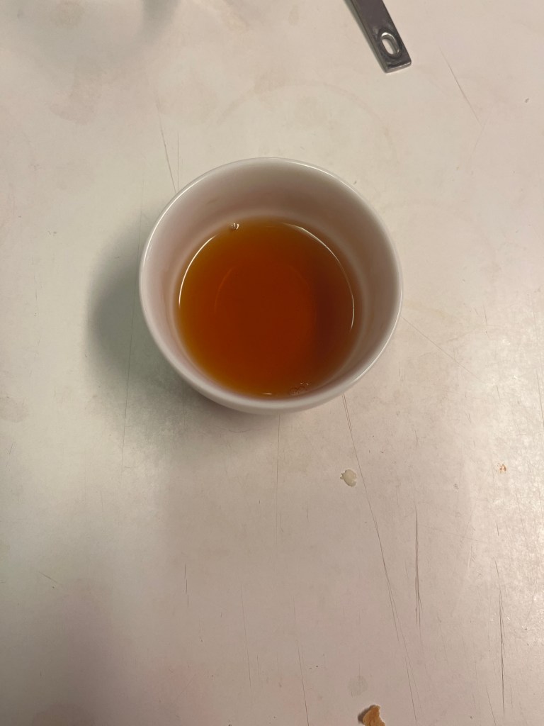 The color of the tea is a dark reddish brown. It smells like what you would expect tea to smell like: dried leaves that have been roasted to a degree with a hint of brightness.