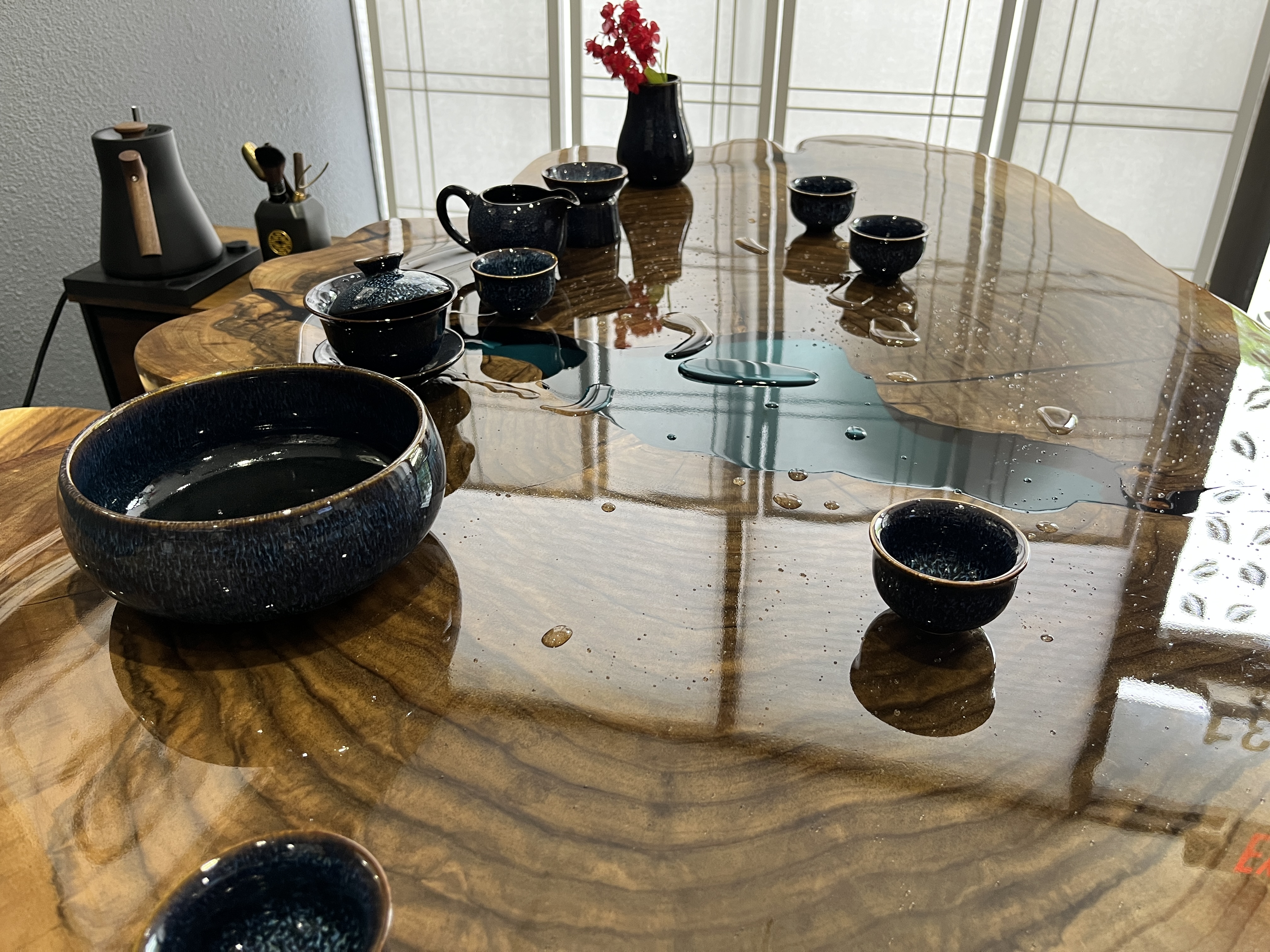 When I worked for The Cultured Cup, we had started doing more Gong Fu Cha demonstrations at the bar for private tastings. A co-worker put us onto a Polish table-maker who was designing Gong Fu Cha tea tables. See the picture here.